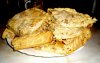 Затем готовые пласты теста раскатываем, вилкой накалываем в разных местах, кладём пласт на пласт, смазываем маслом растительным противень и верх пласта. В середину пирога выкладываем сыр + отваренную спаржу.