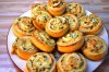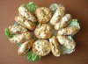 У булочек срезать верх, выбрать мякиш, оставив немного возле стенок и донышка. Чуть подсушить в горячей духовке, натереть внутри и по краям чесноком. Приготовить любую начинку – мелко нарезать все ингредиенты (они должны быть готовыми, если берете грибы, то их предварительно обжарить), смешать со сметаной, специями, зеленью, посолить. Выложить в булочки, утрамбовать. Сверху засыпать тертым сыром и запечь в разогретой до 180 градусов духовке. Запекаются булочки быстро, достаточно 15 минут.