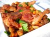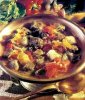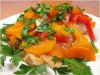 На дно формы налить немного растительного масла. Овощи помыть, почистить и нарезать довольно крупно – картофель крупными ломтиками, баклажаны и кабачки – кружочками, морковь – кольцами, лук разрезать на четвертинки, перец - ломтиками, стручки фасоли – пополам или на три части. Все овощи (кроме помидор) смешать, посолить, приправить специями, посыпать молотым перцем. Выложить на дно формы, положить нарезанные кусочками помидоры, сверху разложить кусочки куриного мяса. Запекать на среднем огне около часа.