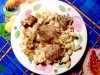 Печенку промыть, удалить пленочки. Луковицу мелко нарезать, спассеровать в небольшом количестве растительного масла до прозрачного цвета. Положить печенку, жарить пока она не поменяет цвет. Огонь должен быть небольшим, чтобы печенка не пережарилась. Обжаренную печень достать из сковородки, нарезать кусочками, снова вернуть в сковородку.