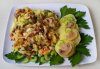 Лук нужно нарезать тонкими полукольцами и замариновать в лимонном соке. В крайнем случае подойдет и уксус. Огурцы нарезаются тонкими кружочками или полукружочками, помидоры – дольками, не очень мелко. Шампиньоны желательно выбирать мелкие, их можно разрезать на две половинки или оставить целыми. Крупные грибы режутся на четыре части. Смешиваются огурцы с помидорами и луком, добавляются шампиньоны, кукуруза, салат заправляется растительным маслом. Для заправки лучше выбирать масло с запахом, оно даст и вкус, и аромат.