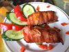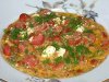 Сосиски режутся произвольно – кружочками, полосочками или просто разрезаются вдлину на несколько частей. В сковородке разогревается растительное масло, выкладываются сосиски, добавляются любимые приправы. Пока сосиски подрумяниваются, мы успеем нарезать болгарский перец брусочками. Как только сосиски обжарятся, положить перец, теперь нужно нарезать помидоры меленькими кубиками, измельчить чеснок и укроп.