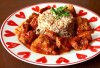 Пока готовится мясо, займемся соусом. Лук мелко нарезать, с помидор снять кожицу, мякоть нарезать кусочками. Обжарить лук, добавить помидоры, обжаривать все вместе пять минут. положить томатную пасту, соль и перец по вкусу, базилик. Перемешать. Если любите кисло-сладкий вкус, то добавьте столовую ложку яблочного уксуса и чайную ложку сахара. Всыпать ложку муки, размешать чтобы не образовались комочки.