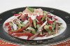 В блюдо выкладываем кусочками нарезанный язык, горошек консервированный, остывшую спаржу, перемешиваем.