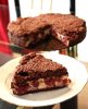 Затем вынимаем формочку, вишни без косточек равномерно выкладываем по пирогу и теперь осталось присыпать наш пирог присыпкой.