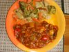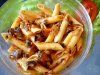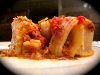 Далее, включаем духовку и прогреваем ее до 200-210 градусов. Попутно сливаем макароны и вытаскиваем лавровый лист со сковороды. На противень выкладываем треть получившегося томатного соуса, сверху кладем половину макарон, затем опять треть томатного соуса, снова макароны, на них оставшийся соус, и засыпаем все это тертым сыром.