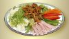 Если делать просто салат, то все ингредиенты (включая перец) режутся соломкой, добавляется измельченная зелень и заправляется майонезом.