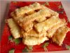 В мисочке взбиваем яйца, можно по вкусу добавить в них любимые специи или сушеную зелень и чуть подсолить. В другую мисочку натираем на мелкой терке сыр или насыпаем кунжут, тмин – на выбор. Тесто раскатываем в пласт толщиной в три – четыре сантиметра, нарезаем ножом на полоски. Обмакиваем каждую в яйцо, выкладываем на застеленный пергаментом противень. Посыпаем присыпкой и ставим в разогретую до 180 градусов духовку. Выпекаем 15 минут.