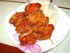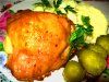 Выложить замаринованное мясо на противень, обложить ломтиками лимона и запекать в духовке полчаса при температуре 200 градусов. Если готовите целую курицу, то времени понадобится чуть больше часа. Можно обложить курицу ломтиками лимона, а рядом положить дольки картофеля – сразу приготовится и гарнир.