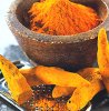 Омолаживающая маска. Смешать по чайной ложке куркумы, меда, молока или сливок. Нанести смесь на очищенную кожу лица, через 10 – 20 минут смыть теплой водой, а затем освежить лицо прохладной водой. Для сосудистой кожи мед не рекомендуется, его нужно заменить на сок алоэ или на другой компонент который подходит вашей коже.