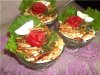 Отвариваем картофель и морковку на пару. Отвариваем куриную грудку, даем ей остыть. Варим яйца вкрутую. Сыр натираем на мелкой терке. Овощи натираем на терке, небольшой кусочек огурца оставляем для украшения, остальное нарезаем мелкими кубиками. Мелко режем куриное мясо и зелень.