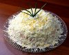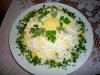Собираем салат. На дно плоской тарелки или блюда выкладываем слой тертого картофеля, потом курица, огурец. Каждый слой промазываем майонезом. Делаем слой из мелко нарезанной зелени, на нее натираем яйца и покрываем слоем майонеза. Дальше идет слой из тертой морковки, майонез и сверху все засыпаем тертым сыром. Украшаем салат по желанию. Ему нужно дать время пропитаться, лучше салат готовить заранее.