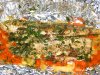 Отрезаем кусок фольги длиннее чем рыба. Смазываем поверхность растительным маслом (чтобы не прилипла рыба), укладываем на фольгу рыбу. Если делаете с гарниром, то разложите на фольге или отваренный до полуготовности рис или сырой картофель нарезанный кружочками (картофель тоже можно отварить до полуготовности). И уже на рис или овощи укладываем рыбу. Поливаем ее майонезом, засыпаем большим количеством нарезанного полукольцами лука. Соединяем края фольги, плотно защипываем чтобы не вытек сок во время запекания. Ставим в разогретую духовку и запекаем при температуре 180 градусов примерно полчаса.