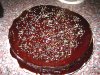 Чернослив заливаем кипятком чтобы он немного разбух. Вынимаем косточку, освободившееся место заполняем грецким орешком. Взбиваем сметану с сахаром до пышной массы. На нижний корж намазываем крем, потом выкладываем слой чернослива, снова крем и накрываем вторым коржом. Обмазываем кремом бока и верх, украшаем по желанию.