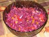 3. Капусту посолить и посыпать сахаром, помять до появления сока. Морковь заправить лимонным соком и растительным маслом.