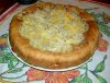Форму для выпечки смазываем маслом, выкладываем тесто и руками распределяем его по донышку. По краям делаем небольшой бортик.