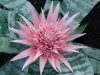 Среди всех культивируемых видов эхмеи (а их около десяти) самой неприхотливой считается эхмея сверкающая. Листья необычного цвета – сверху зеленые, снизу – красноватые с фиолетовым оттенком. Цветет небольшими многочисленными ярко-красными цветками, собранными в метельчатое соцветие.