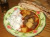 Томатную пасту разводим в 300мл. кипятка, подсаливаем. Заливаем этим соусом котлеты с картошкой и ставим снова в духовку. Температуру увеличиваем, доводим до готовности. Готовность блюда определяется по готовности картошки.