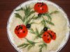 Как только сыр расплавится, перекладываем его на пищевую пленку, накрываем сверху еще одним слоем пищевой пленки и раскатываем в ровный пласт толщиной около сантиметра. Верхний слой пленки снимаем, на сыр кладем курагу (рядочком) и сворачиваем пласт рулетом. Заворачиваем рулет в пленку и убираем в холодильник чтобы сыр хорошо застыл. Потом снимаем пленку, нарезаем рулет тонкими ломтиками и украшаем как кому нравится.