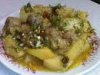 Формируем блюдо. Надо готовую уже треску переложить на тарелку. Бульон, в котором она варилась немного выпарить и полить потом поверх нее.