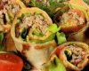 Для приготовления начинки надо проварить свежий горошек минуты четыре, вода должна быть подсоленная. После этого горошек надо выложить на сито. Почистить лук и мелко порезать. Ветчину также надо очень меленько нарезать. Затем обжарить надо лук, затем к нему прибавить горошек. Дать массе остыть и соединить ее с рисом и ветчиной. Перемешать и присолить, поперчить, вымешать.