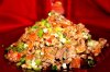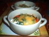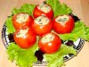 У помидор срезать верх (там, где плодоножка), мякоть осторожно вынуть чайной ложечкой. Вместе со срезанной крышечкой мякоть нарезать мелкими кусочками. Также мелко нарезать лук и болгарский перец. Чеснок пропустить через чесночницу.