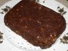 Ставим на водяную баню сливочное масло. Когда масло растает, добавляем к нему разломанный кусочками шоколад, ждем пока он растворится. Выливаем эту массу к сухой смеси, хорошо перемешиваем. Форму застилаем пищевой пленкой, выкладываем в нее получившуюся массу, разравниваем и убираем в холодильник на ночь. Застывший торт вынимаем, освобождаем от пленки и посыпаем какао.