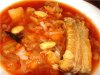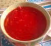 Провариваем грудинку, бульон процеживаем, мясо отделяем от костей и нарезаем. Свеклу нарезаем некрупной соломкой и ставим тушиться.
