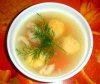 Отдельно сварить картофель, затем слив воду потолочь, добавить яйца, муку и соль. Перемешать. Стол припылить мукой и выложить картофельное тесто, сделать из него колбаску, затем порезать наискосок. Отдельно клецки сварить, как пельмени. После этого переложить в куриный бульон и варить еще пару минут. Готовый бульон разлить по тарелкам, добавить мясо и клецки и присыпать свежей зеленью.