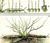 Саженцы с обнаженными корнями. После того, как саженцы выкапывают, с корней стряхивают землю и перевозят их также без почвы. Чтобы корни не пересохли, присыпают влажным торфом или заворачивают во влажную ткань. Обычно в таком виде продаются саженцы листопадных деревьев и кустарников, и некоторые виды (особенно кустарники) приживаются даже лучше, чем другие виды саженцев.