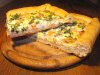 Раскатываем второй кусок теста и накрываем начинку. Края защипываем. Делаем отверстие чтобы выходил пар. Выпекаем на среднем огне примерно 50 минут. Незадолго до готовности верх пирога можно смазать молочком или чайной заваркой – он будет румяным.