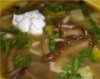 Грибы выложить в воду и отварить до кипения. Затем готовый грибной бульон процедить через сито, слив бульон в отдельную кастрюлю, а грибы выложить на разделочную доску и порезать на четвертинки. На топленом масле обжарить мелко порезанный лук, и добавить его в бульон, туда же положить предварительно помытый рис и варить на небольшом огне. По мере выкипания воды рекомендуется немного доливать кипяченую воду. По прошествии 10-15 минут, в суп выложить отваренные грибы и варить еще 3-4 минуты. Суп готов. Подавать вместе со сметаной и мелко нарезанной зеленью