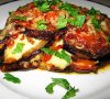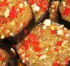 На растительном масле поджарить лук, морковь, баклажаны и красный болгарский перец.