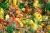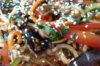 Репчатый лук и красный болгарский перец нарезать соломкой.