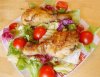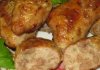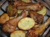 В каждую тарелку положить по готовой куриной ножке и гарнировать овощами.