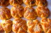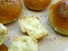 Что нам понадобится: муки до двух с половиной стаканов, йогурта натурального один стакан, дрожжей семь грамм, чуток соли, яйцо одно и растительного масла две столовые ложки, молоко и масло сливочное. Молоко понадобится только для смазки булочек, сверху их можно присыпать кунжутом.