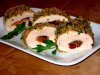 На кусочек мяса выложить начинку, свернуть рулетом, скрепить зубочисткой или шпажкой или обмотать нитками.