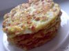 Далее картофель соединяют с яично-сметанной смесью, добавляют к полученной массе чеснок, зелень укропа, бекон. Все еще раз тщательно перемешивают.