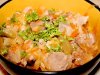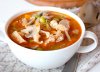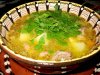 Достаем мясо из бульона, режем мелкими кусочками. Также мелко режем куриное мясо. Возвращаем в бульон, туда же отправляем содержимое сковородки, остальные маслины и варим минут двадцать. Солить не нужно, но попробуйте на вкус – если кажется что соли недостаточно – подсолите в самом конце.