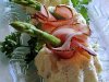 Лук-шарлот (чистить его не надо) заливаем кипяточком и варим 3 минуты. Откидываем на дуршлаг, обдаем холодной водичкой и чистим. Картошку, морковку и кукурузу отвариваем в пароварке, практически до готовности. Цикорий разбираем на листики, у перчиков убираем плодоножку и семена. Шарлот, цуккини и перчики запекаем в форме 10 мин. при 200°С. Предварительно овощи сбрызгиваем маслом.