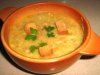 Бульон доводим до кипения. Опускаем картофель, варим до готовности картофеля. Выкладываем в кастрюлю овощную поджарку, добавляем лавровый лист и варим при слабом кипении пять минут.