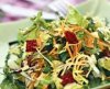 Помидоры режем на две части. Для заправки смешиваем масло, виноградную горчицу, устричный соус. Добавляем изюм и приправляем сахаром.