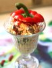 Ананасы и корнишоны (или маринованные огурцы) нарежьте кубиками как на салат и добавьте к охлажденной печенке с луком. Заправьте майонезом, подсолите по вкусу и сразу же подавайте к столу.