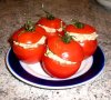Форму застелите пергаментом, вылейте половину теста. Выложите начинку, на нее – смесь из томата и сливок (по желанию) и залейте все оставшимся тестом. Поставьте в разогретую до 200 градусов духовку, выпекайте сорок минут. Готовому пирогу дайте немного остыть в форме и нарежьте кусочками.