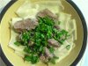 2. Мякоть баранины и курдючное сало порежьте на куски и пропустите через мясорубку, добавьте нашинкованный лук, посолите, поперчите, влейте около половины стакана воды, всё перемешайте.