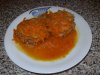 Третье яблоко режем кусочками. Из фарша делаем тефтельки, внутрь каждой кладем кусочек яблока. Обжариваем на масле со всех сторон до румяного цвета. складываем в казанок, заливаем соусом и тушим несколько минут.