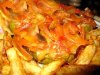 Поставим в печь минуток на тридцать. Температура печи около двухсот градусов. За десять минут до готовности один конец рукава приоткрыть, тогда кабачок запечётся. Приятного аппетита.