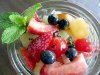 Фрукты очищаем от кожицы, режем кусочками. Мелкие ягоды оставляем целыми. Добавляем в тесто ягоды-фрукты, орешки (их измельчите в блендере или в ступке), размешиваем чтобы добавки распределились по тесту равномерно.