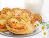 Из готового теста формируем булочки – скатываем шарики, потом их разминаем, в серединку кладем ложку начинки и формируем булочки. Укладываем их в смазанную маслом форму, даем немного подойти и ставим в разогретую до 180 градусов духовку. Выпекаются булочки 15 – 20 минут.