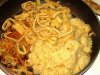 Половину смеси отливаем и маринуем в ней мясо 15 минут. Обжариваем его на сильном огне, можно со сковородки не снимать.